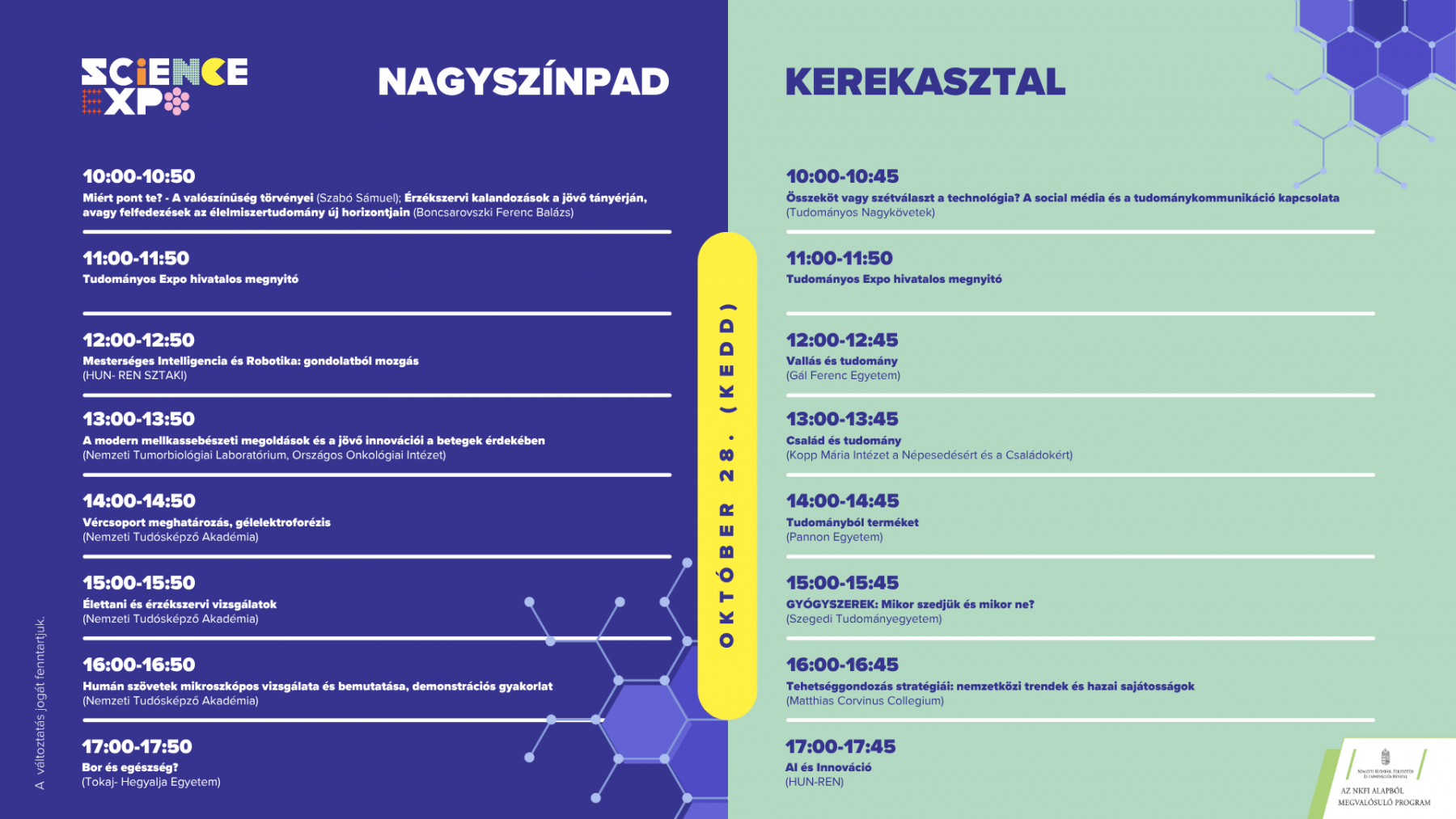 A 2025-ös Tudományos Expo célja, hogy a tudományt élményszerűen, minden korosztály számára érthetően és vonzóan mutassa be. A háromnapos rendezvényen a látogatók nemcsak megfigyelhetik, hanem saját maguk is kipróbálhatják, hogyan formálja a tudomány a mindennapjainkat és a jövőt.